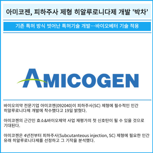 [카드] 아미코젠, 피하주사 제형 히알루로니다제 개발 '박차'