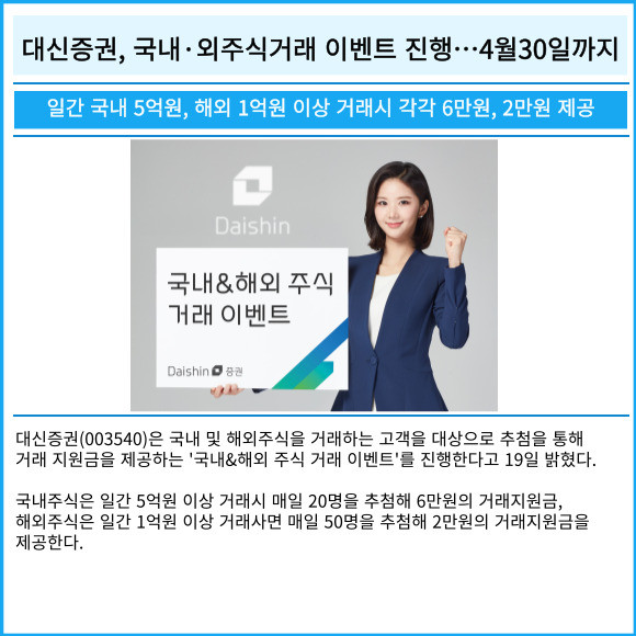[카드] 대신증권, 국내·외 주식거래 이벤트 진행…4월30일까지