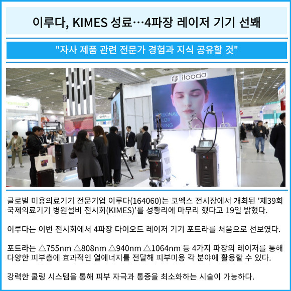 [카드] 이루다, KIMES 성료…4파장 레이저 기기 선봬