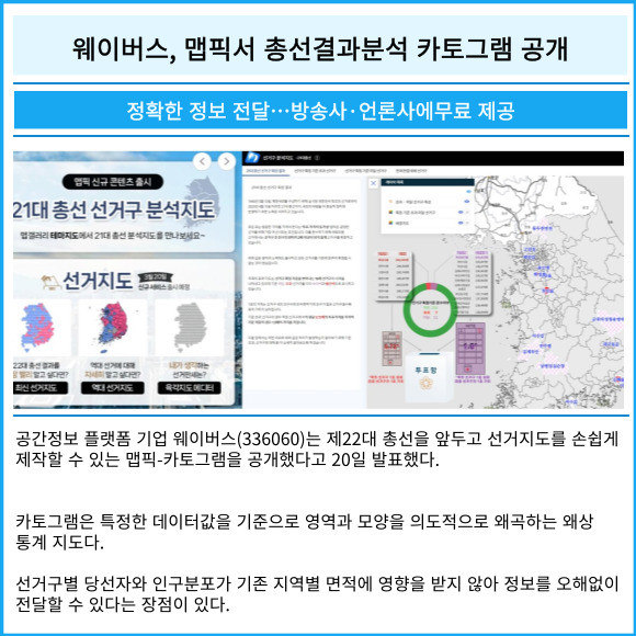 [카드] 웨이버스, 맵픽서 총선결과분석 카토그램 공개