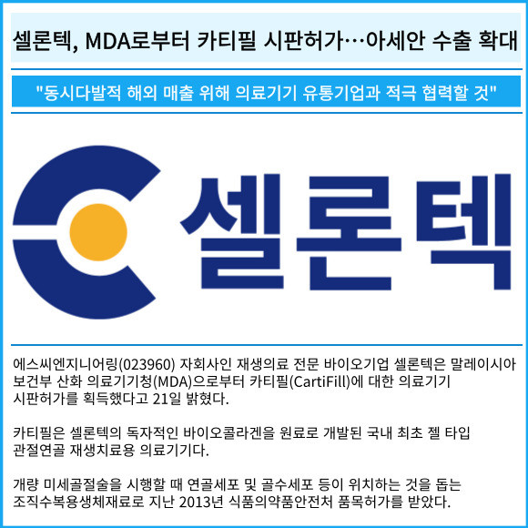 [카드] 셀론텍, MDA로부터 카티필 시판허가…아세안 수출 확대