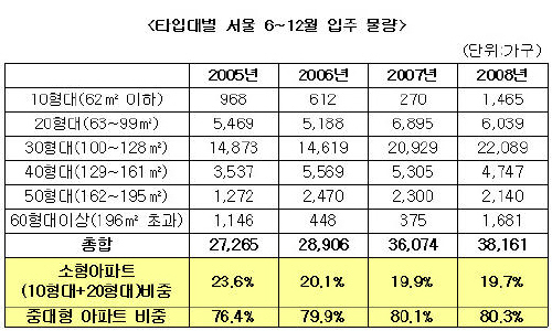 연내 서울 입주아파트, 소형 ‘품귀시대’