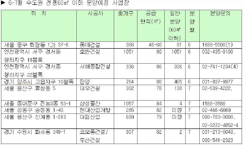 6월 수도권, 중소형 6,400여가구 집중
