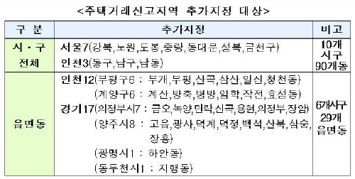 국토부, 주택거래신고지역 추가지정