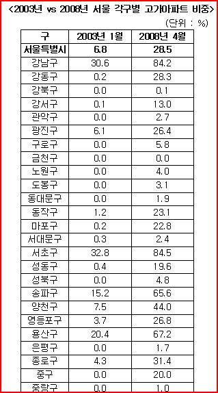 서울 고가아파트 5년만에 4배 증가