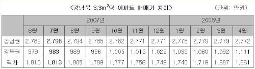 강북, 강남과 아파트값 격차 줄어들어