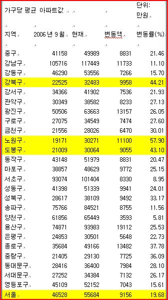 강북 3개구 아파트값 평균 3억원 돌파