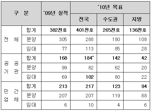 국토부, 2010년 전국에 40만가구 공급