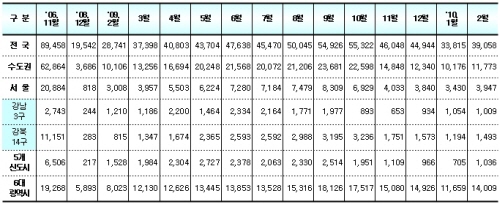 2월 아파트 거래량 소폭 증가, 재건축은 시큰둥