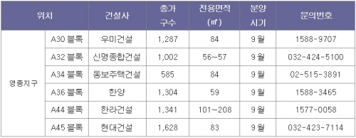 영종하늘도시, 9월 7100여가구 동시분양