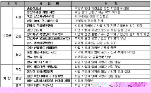 전국 대규모 개발 프로젝트 ‘곳곳 표류중’