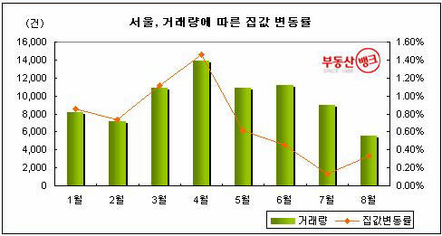 거래량 줄어들자, 집값도 ‘뚝’