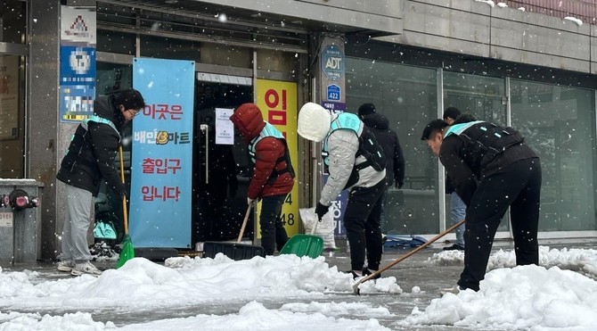 우아한청년들, 폭설 대비 라이더 안전 위해 '제설캠페인' 진행