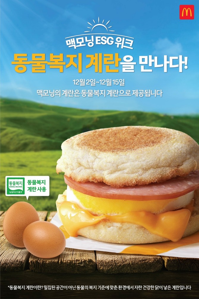 맥도날드, 12월2일부터 2주간 동물복지계란 '맥모닝' 판매