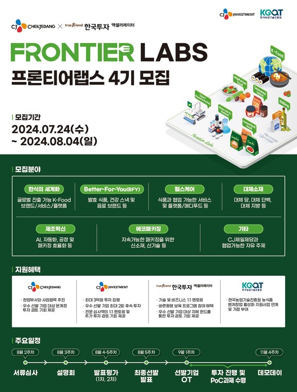 CJ제일제당, '프론티어 랩스 4기' 모집…스타트업 지원 체계 강화