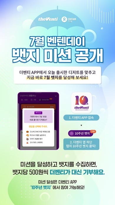 더벤티, 10주년 '벤텐데이' 미션 공개…기부금 적립 이벤트