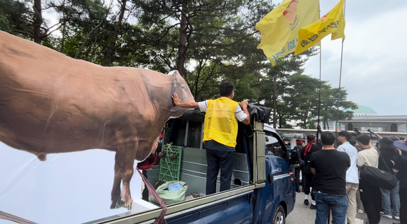 소 태우고 국회로 진격…전국한우협회, 한우 반납 투쟁 "한우법 제정하라"