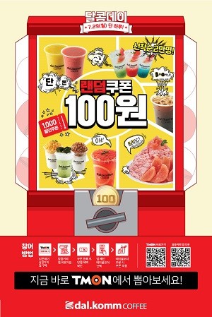 달콤커피, 티몬서 '달콤커피 랜덤쿠폰' 100원에 판매