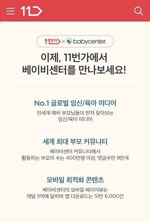 11번가, 모바일 앱 '11번가 베이비센터' 론칭