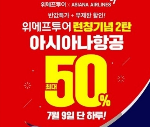 위메프투어, 아시아나 해외 노선 7% 할인 쿠폰 선착순 지급