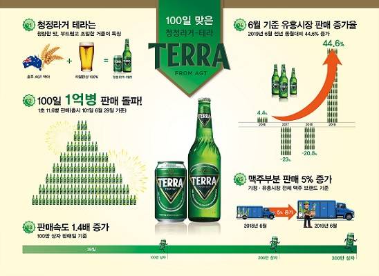 하이트진로 테라, 출시 100일 동안 1억병 판매