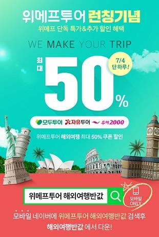 위메프투어, 4일 해외패키지 반값 할인 이벤트