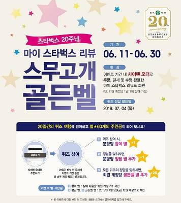 스타벅스, 20주년 '마이 스타벅스 리뷰 스무고개 골든벨' 이벤트