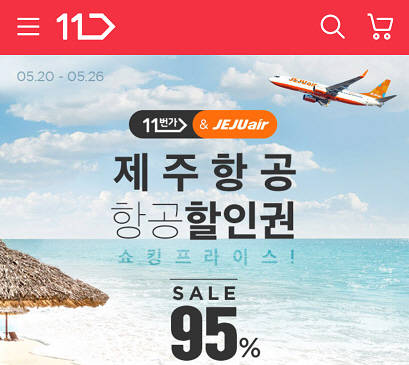 11번가, 제주항공 할인권 95% 할인⋯1만장 한정판매