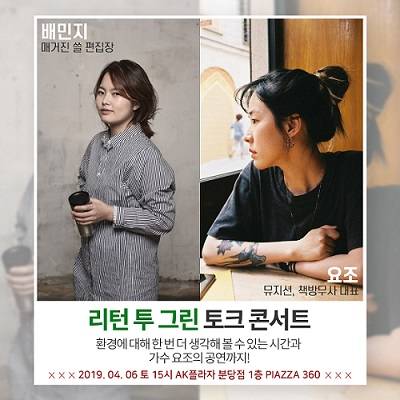 AK플라자, 가수 요조·매거진 쓸과 친환경 토크콘서트 개최