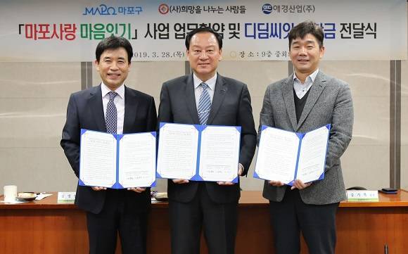 애경산업·마포구·희망을나누는사람들, '마포사랑 마음잇기' MOU 체결