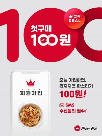 피자헛, 온라인 첫 구매시 파스타 100원 쿠폰 증정