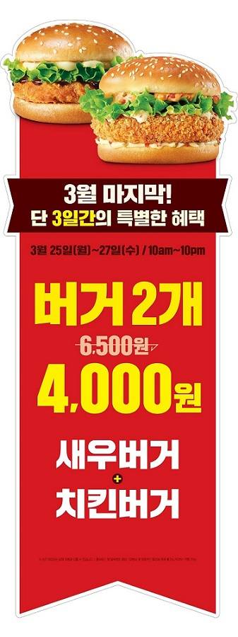롯데리아 '새우+치킨버거 4000원' 행사 진행