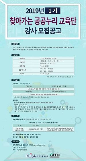 한국문화정보원, 찾아가는 공공누리 교육단 저작권 강사 모집
