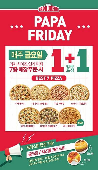 파파존스 '파파 프라이데이' 혜택 업그레이드