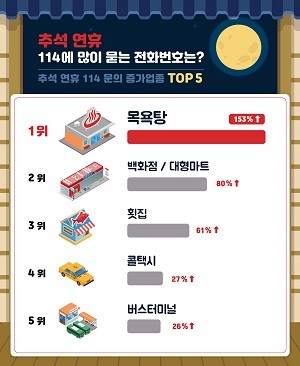 번호안내 114, 추석 연휴간 증가 문의 순위 발표