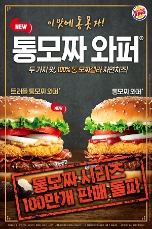버거킹 '통모짜 시리즈' 출시 3주 동안 100만개 판매