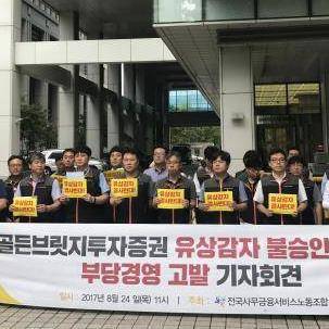 골든브릿지투자증권 노조 "유상감자 불승인 촉구·부당 경영 고발"