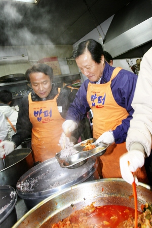 윤 위원장, '밥 퍼주기' 봉사활동 실시