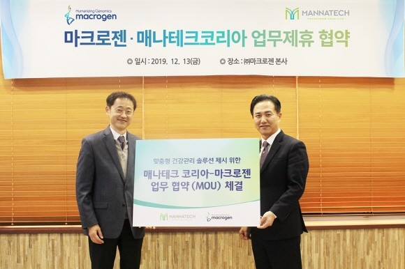 마크로젠. 매나테크 코리아와 개인 맞춤형 건강관리 업무협약