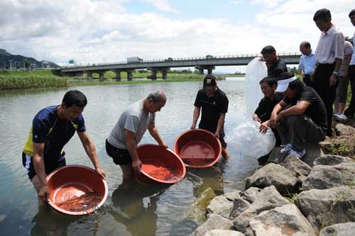 완주군, 뱀장어 치어 방류 ‘일석이조’