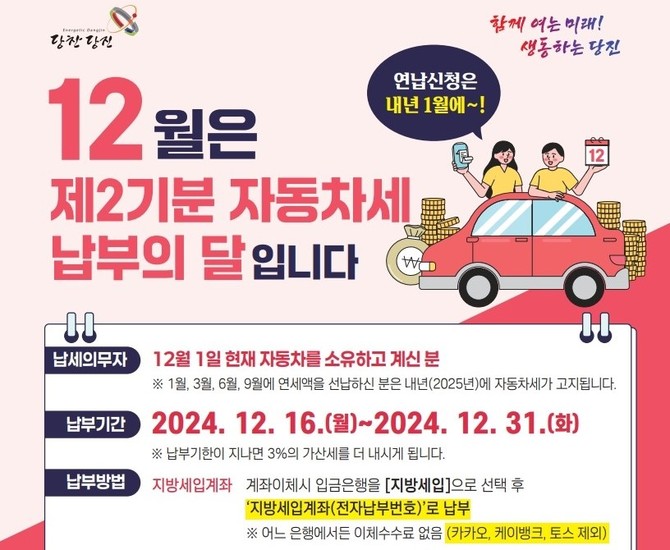 당진시, 제2기분 자동차세 61억원 과세…12월31일까지 납부 당부