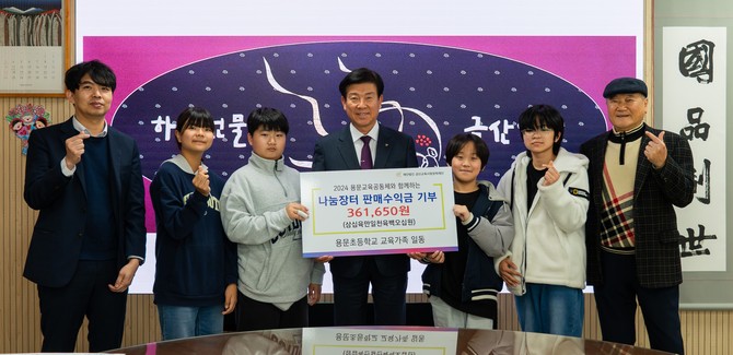 한국농촌지도자 금산군연합회‧용문초 학생, 금산군 교육사랑장학금 기탁