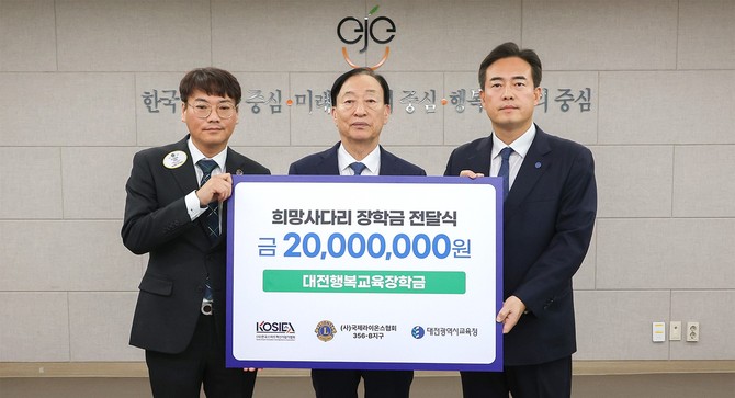 대전시교육청, 2000만원 장학금 기탁 받아…저소득층 및 재능우수 학생 지원