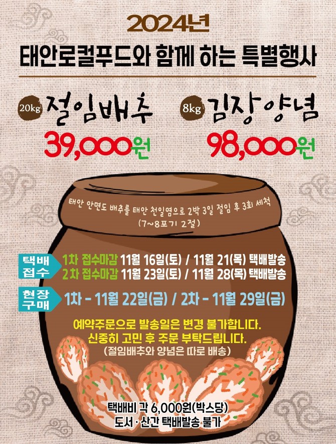 태안군, 김장철 맞아 로컬푸드 절임배추와 김장양념 할인 판매