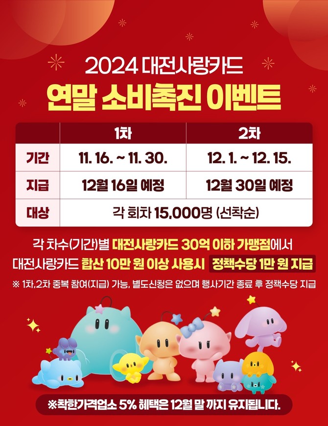 대전시 '대전사랑카드' 10만원 이상 사용 시 1만원 지급 이벤트 진행