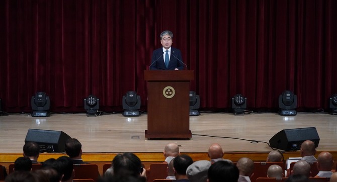[포토] 임상섭 산림청장, 사찰림연구소 출범식 참석해 축하 인사말
