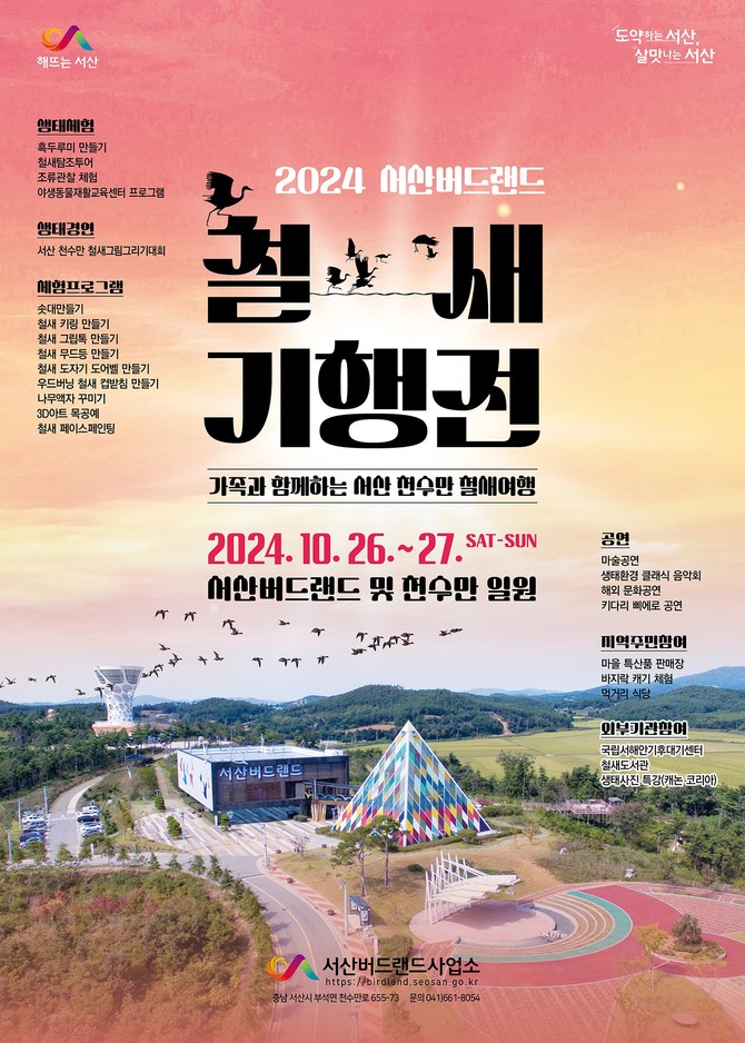 서산시 '2024 서산버드랜드 철새기행전' 천수만에서 오는 26일부터 27일까지 개최