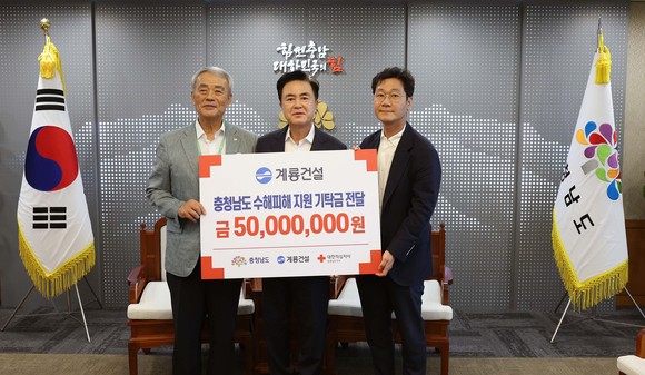 충남도, 계룡건설로부터 5000만원 호우 피해 복구 기탁금 전달받아