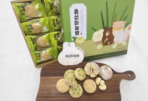 홍성군 지역 특산품 활용한 '홍성마늘빵' 시제품 공개