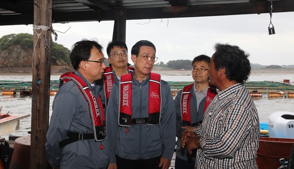노동진 수협 회장, 충남 태안 안면도 천수만 양식장 찾아 피해 상황 점검